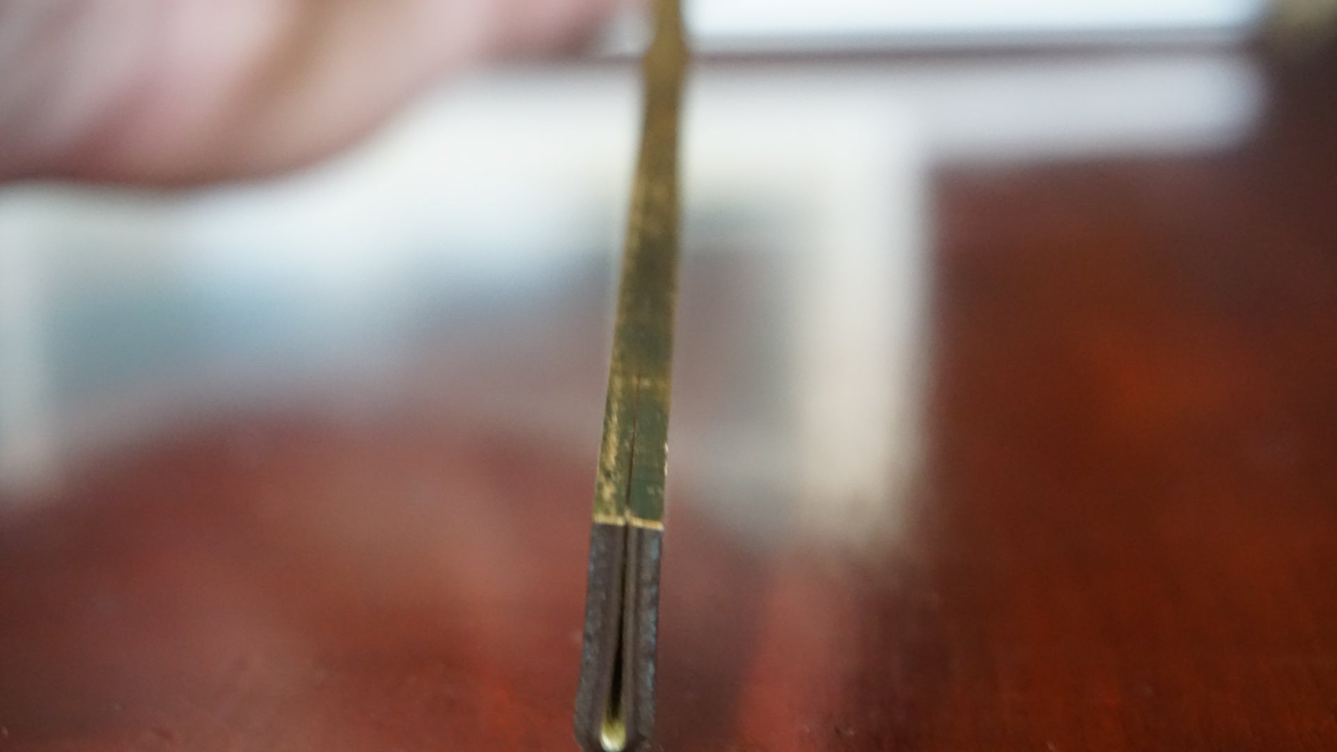 For hundreds of years the back to a fine woodworking back saw has been made out of a folded piece of steel or brass. The tension created by the fold and pinching power of that folded piece of metal is a tried and true method of keeping a saw running and together without problems for a really really long time. There are many 150+ year old saws still around that are or could become fine user saws that have a folded back. This is why I am offering folded saw backs instead of a milled brass back that has become popular recently. With a folded saw back all you need to do is tap the back onto the saw blade, make a few adjustments and your saw will be good to go for the next 100+ years. With a folded back there is no need for the use of epoxy, a pin or the need to try to smash the slot perfectly even by a few thousandths like you would need to with a milled saw back.